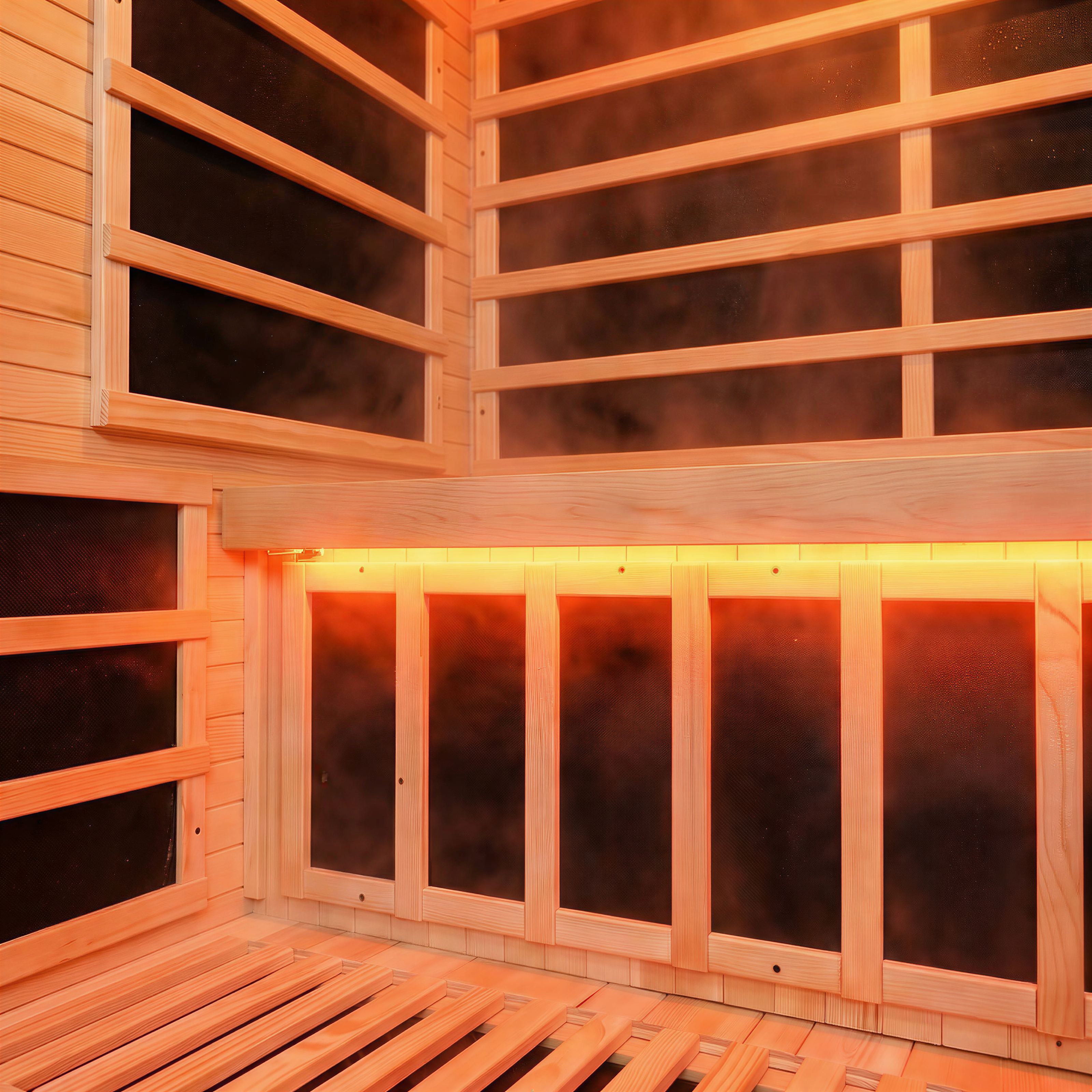 Deep near, mid, and far infrared heat that warms the body directly for a more comfortable sauna session