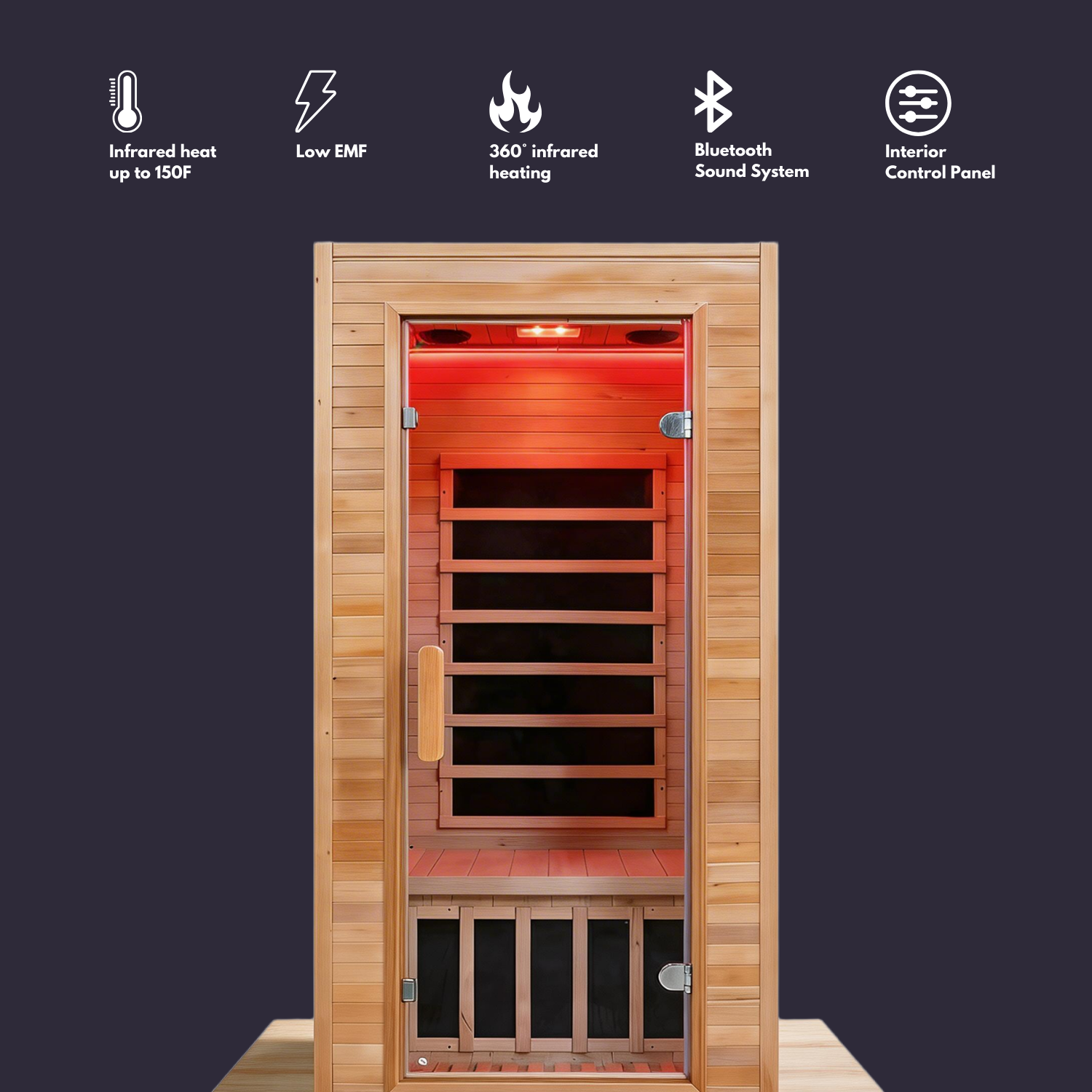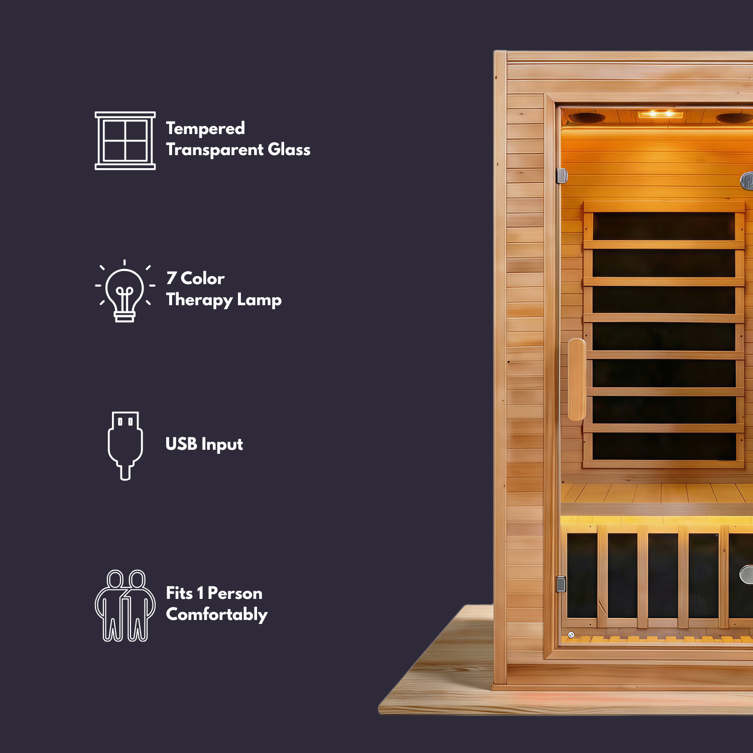 Premium Canadian Hemlock wood design with spacious 1 person indoor capacity
